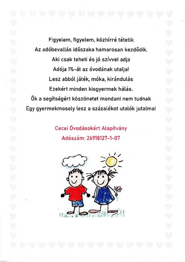 Az alapítvány neve: Cecei Óvodásokért Alapítvány